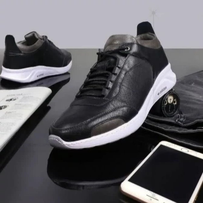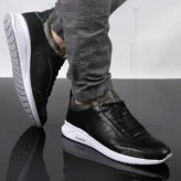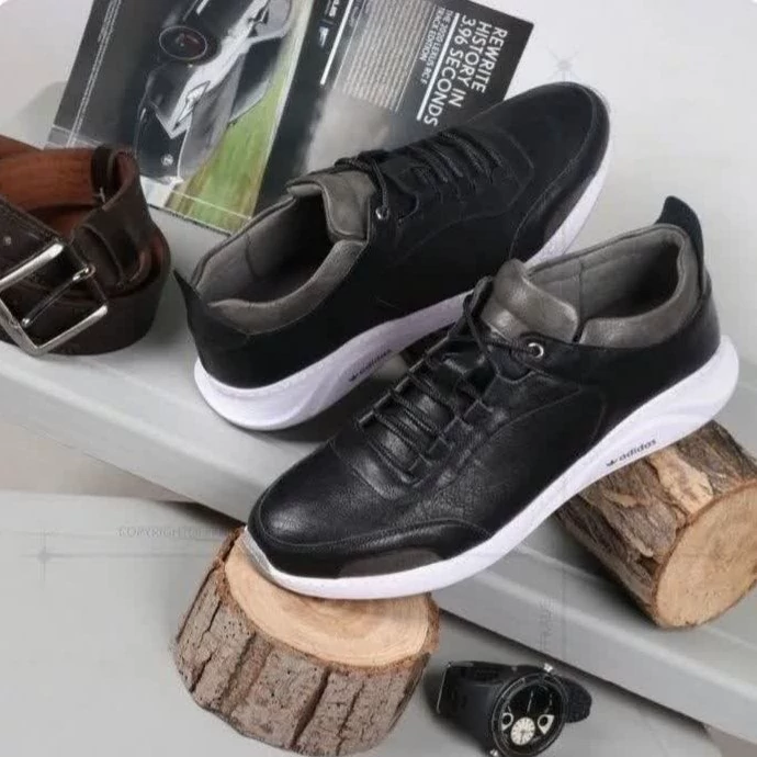 کتونی چرم سوگو کار تبریز ، دور دوخت رنگ مشکی زیره سفید