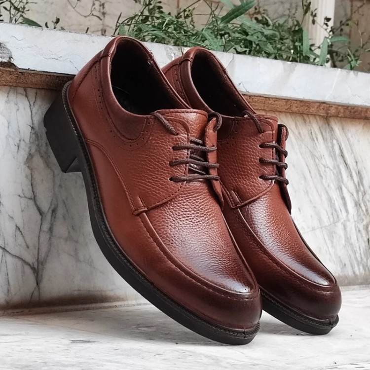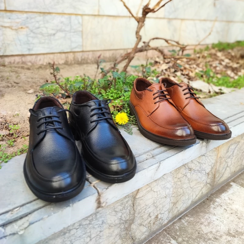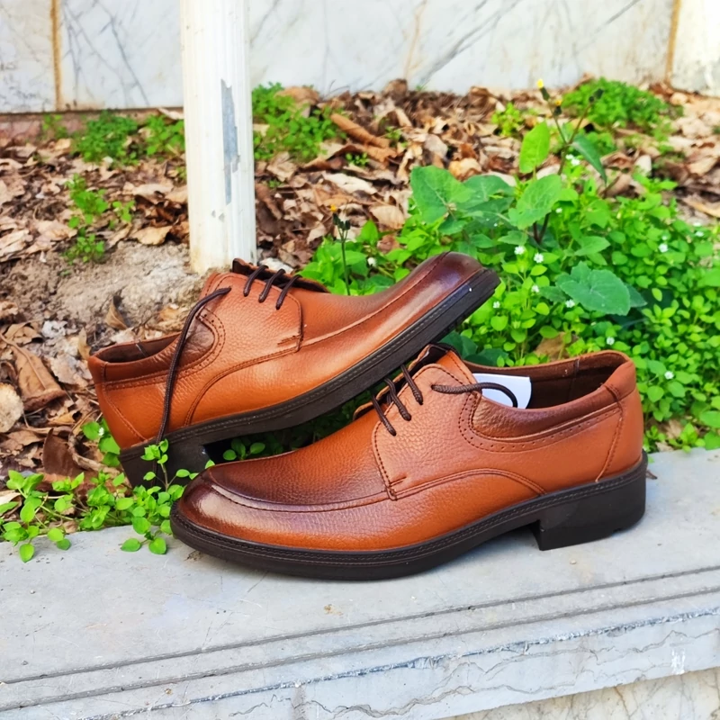 چرم طبیعی پاشنه دار بنددار عسلی