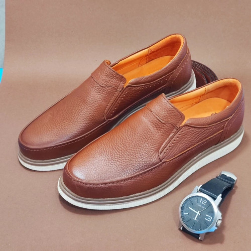 کفش مردانه تمام چرم طبیعی تبریز بدون بند قهوهای